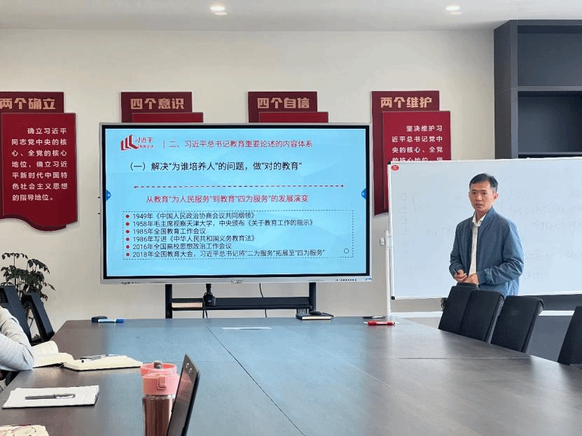 党总支委员、副经理周先阳领学了习近平总书记教育重要论述。带领大家学习领悟习近平总书记关于搞好教育的必须要做到九个坚持,明确为谁培养人、培养什么人、怎样培养人的问题,强调做“对的教育”,做“好的教育”,做“强的教育”。强调“德”是育人育才的根本,重视劳动教育,要从六个下功夫,用“极端重要性”表述了教师工作的战略定位。