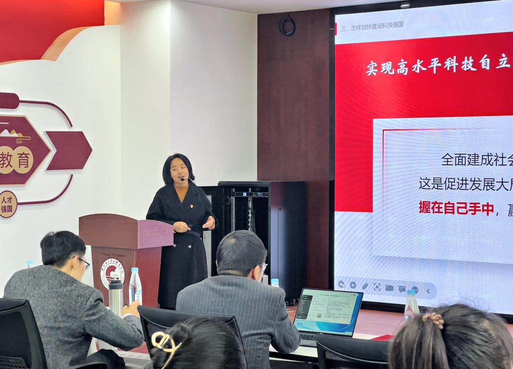 教学展示活动中思想道德与法治教研室代表李成萍老师,毛泽东思想和中国特色社会主义理论体系概论教研室代表杨丽老师,形势与政策教研室代表陈瑞平老师,习近平新时代中国特色社会主义思想概论教研室代表刘赛娥老师,教育性班会教研室代表孙嘉蔚老师分别进行了示范公开课展示。五位教师用精彩生动的教学内容,深入浅出的教学设计,极具感染力的教学语言,大方得体的教学教态展示了高校思政课教师的风采,也为全体与会教师树立了课堂教学的新标杆。