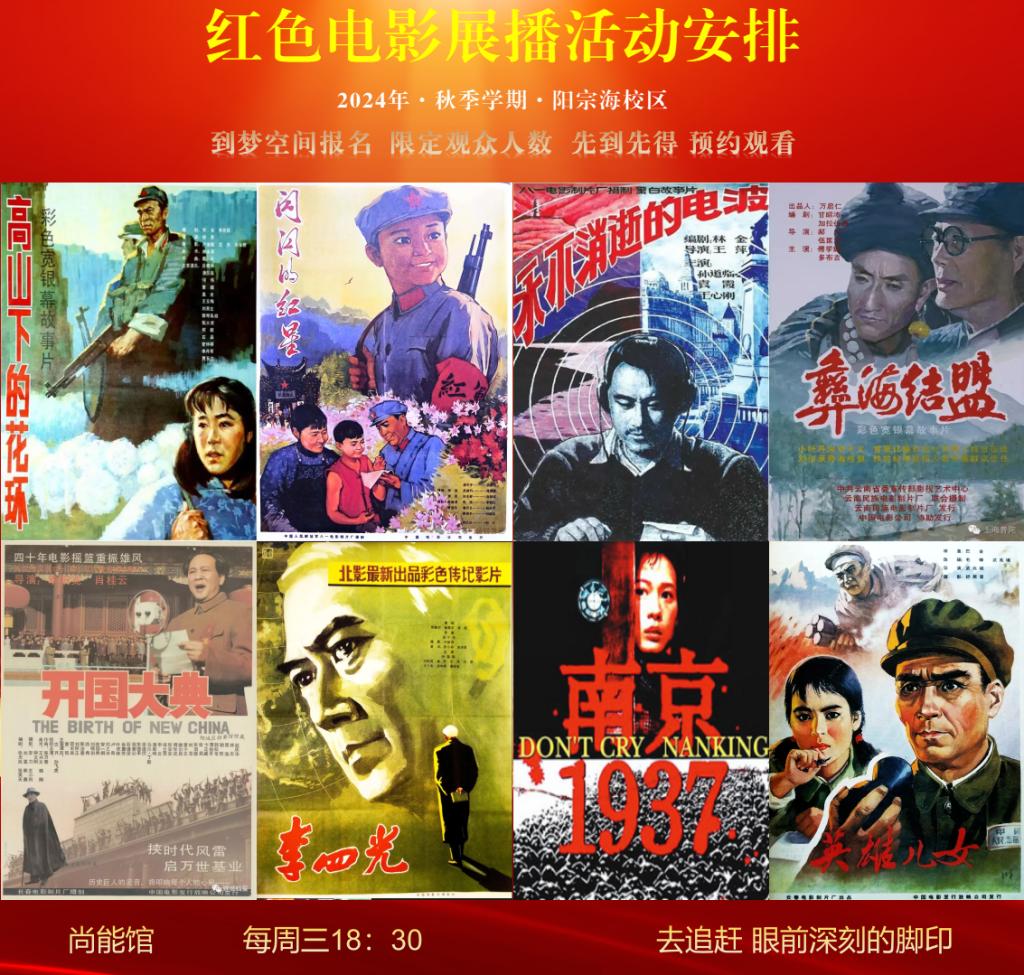 放映时间:本活动将于2024年11月6日启动,每周三18:30-20:00放映一部影片。放映地点:尚能馆。
