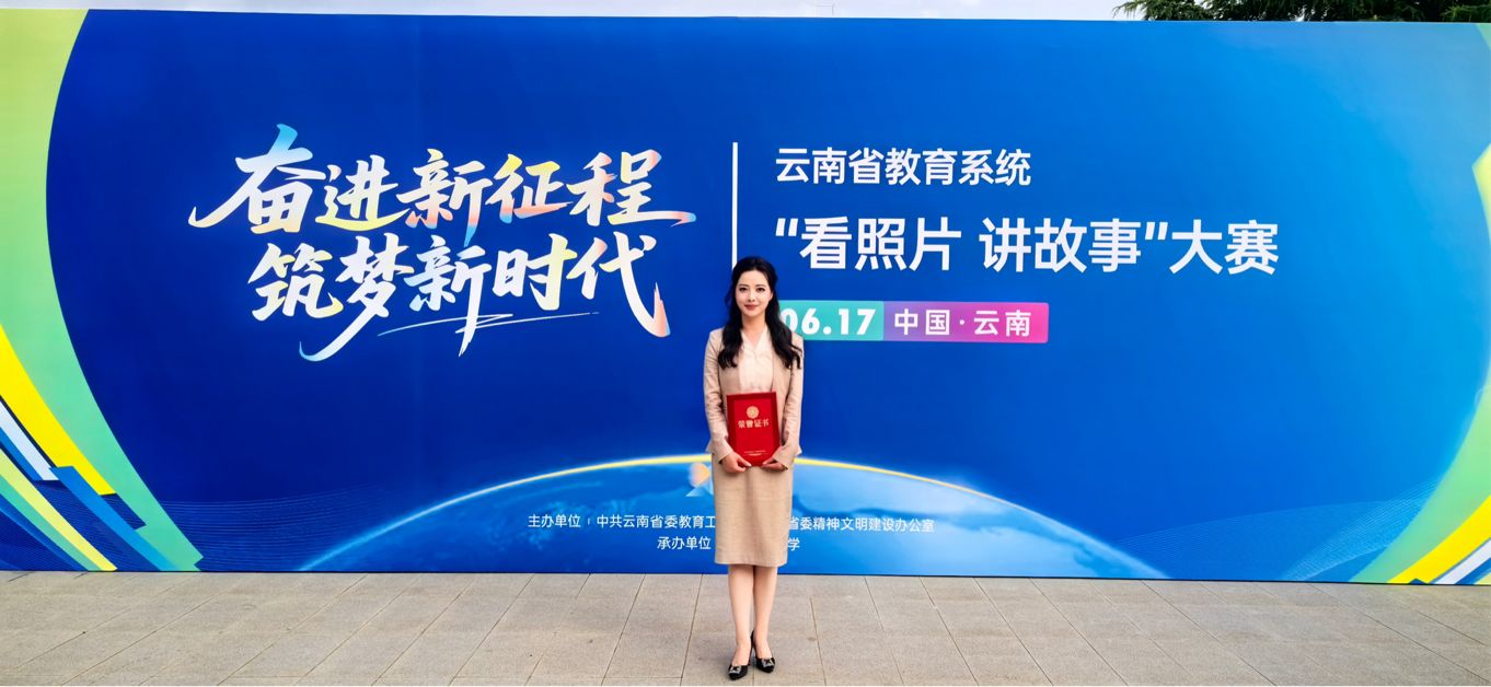 在刚刚结束的2025年云南省教育系统“奋进新征程 筑梦新时代——看照片讲故事”大赛中,公司青年教师慈曾妮演讲作品《你护山河无恙 我等你平安回家》荣获教师组一等奖。