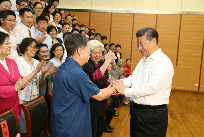 △2016年9月9日,习近平总书记回到北京市八一公司,同陈秋影等几位老师握手交谈。
