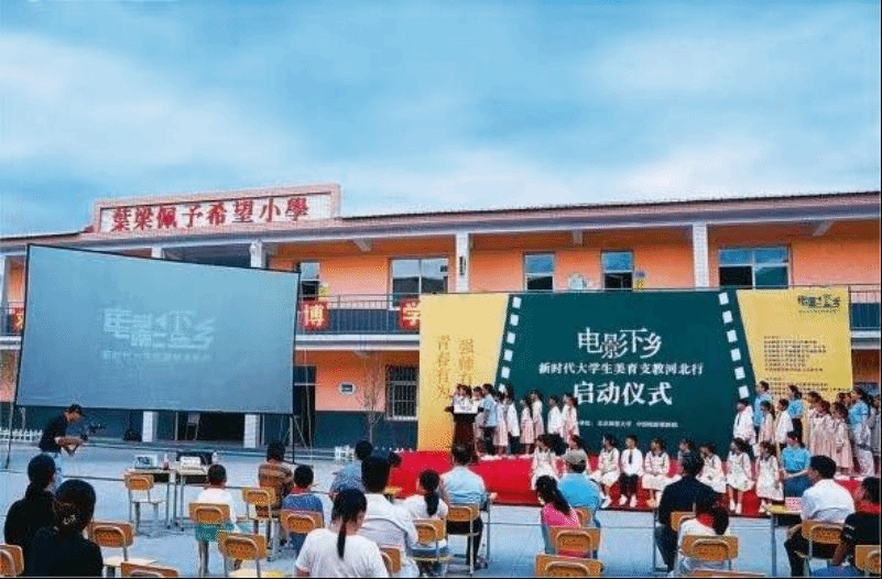 △2022年8月,北京师范大学“电影下乡”支教团在河北省保定市阜平县城南庄镇马兰小学举办活动。